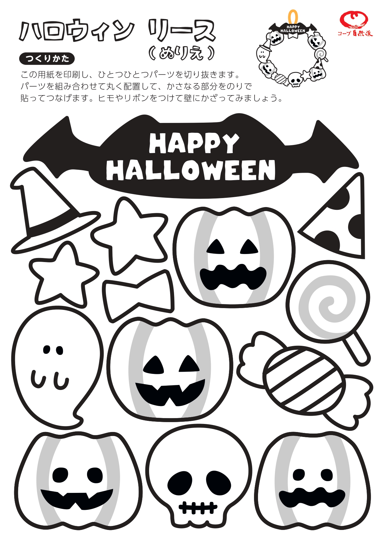 また、ぬりえとしても楽しめる可愛いリースをご用意しています。