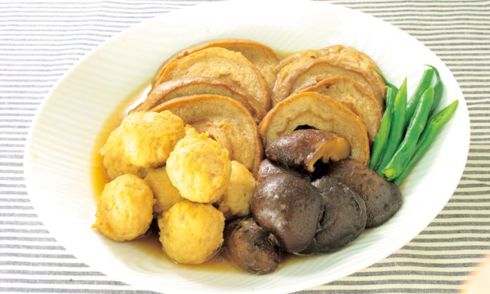 鍋にAを入れ煮立ったら車麩、干し椎茸、鶏団子を入れ5分煮る。Bを加えて蓋をして弱中火で約15分煮る。