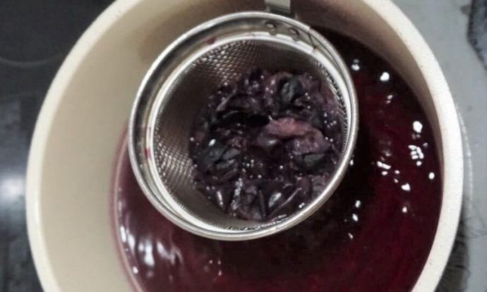 ミョウバンを入れると、パッと色が変わるのでお見逃しなく。