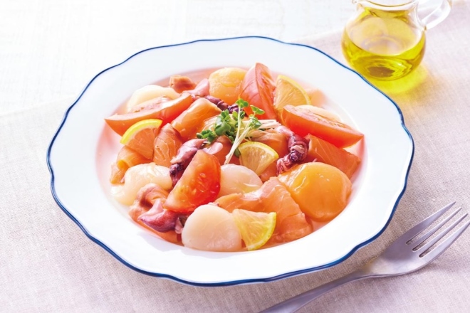 ほたてとスモークサーモンのカルパッチョ
